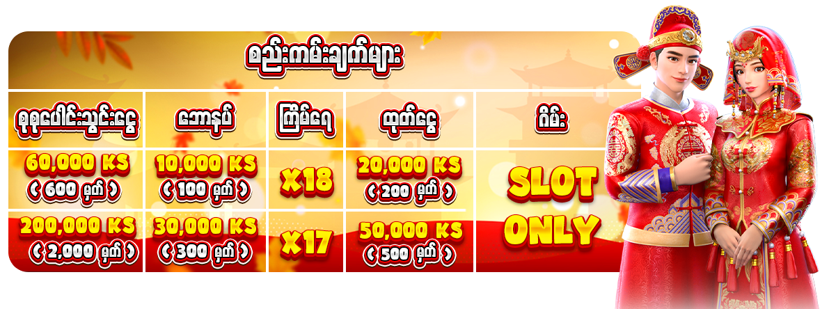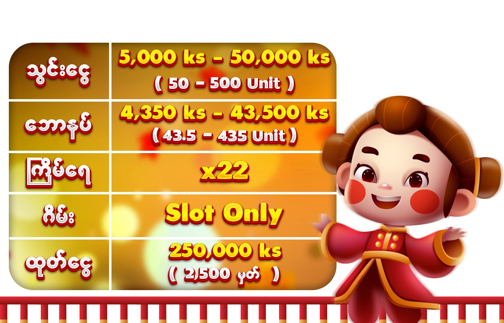 ⚠️ ဆုအမွတ္မ်ားကို coin in (1) ဆျပည့္ေအာင္ေဆာ့ၿပီးမွ ထုတ္ယူႏိုင္မည္ ျဖစ္သည္။