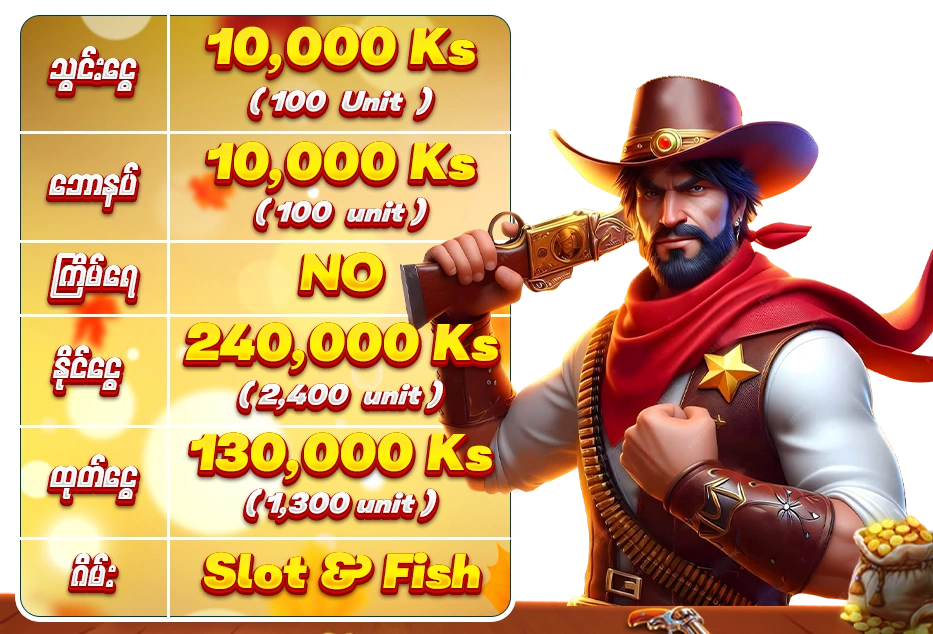 💋 10,000 Ks ဖရီး 10,000 Ksႀကိမ္ေရမလိုထုတ္ေငြ 130,000 Ks