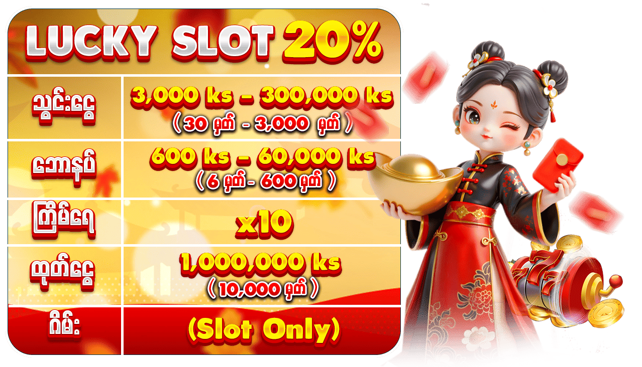 ၿပီးလွ်င္ Customer Service ဆက္သြယ္ၿပီး Free Spin (20) ႀကိမ္ ယူႏိုင္မည္။