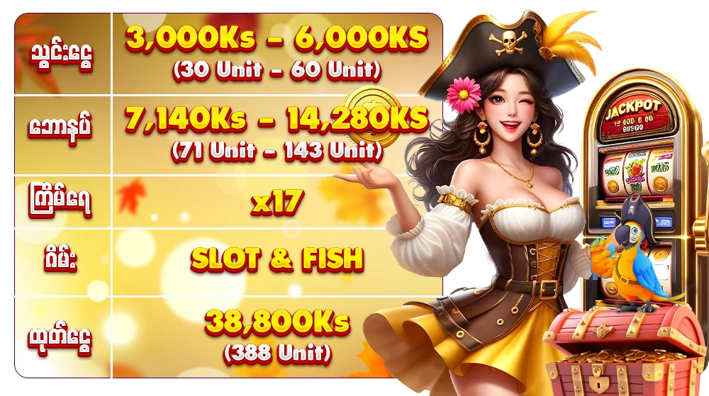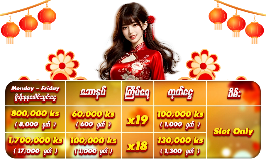 💋 100,000 Ks ဖရီး 100,000 Ks ႀကိမ္ေရ 17 ဆ ထုတ္ေငြ 777,700 Ks