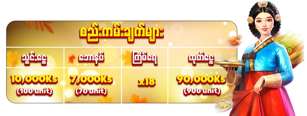 🥇 ပထမဆု 300,000Ks (3,000မွတ္)